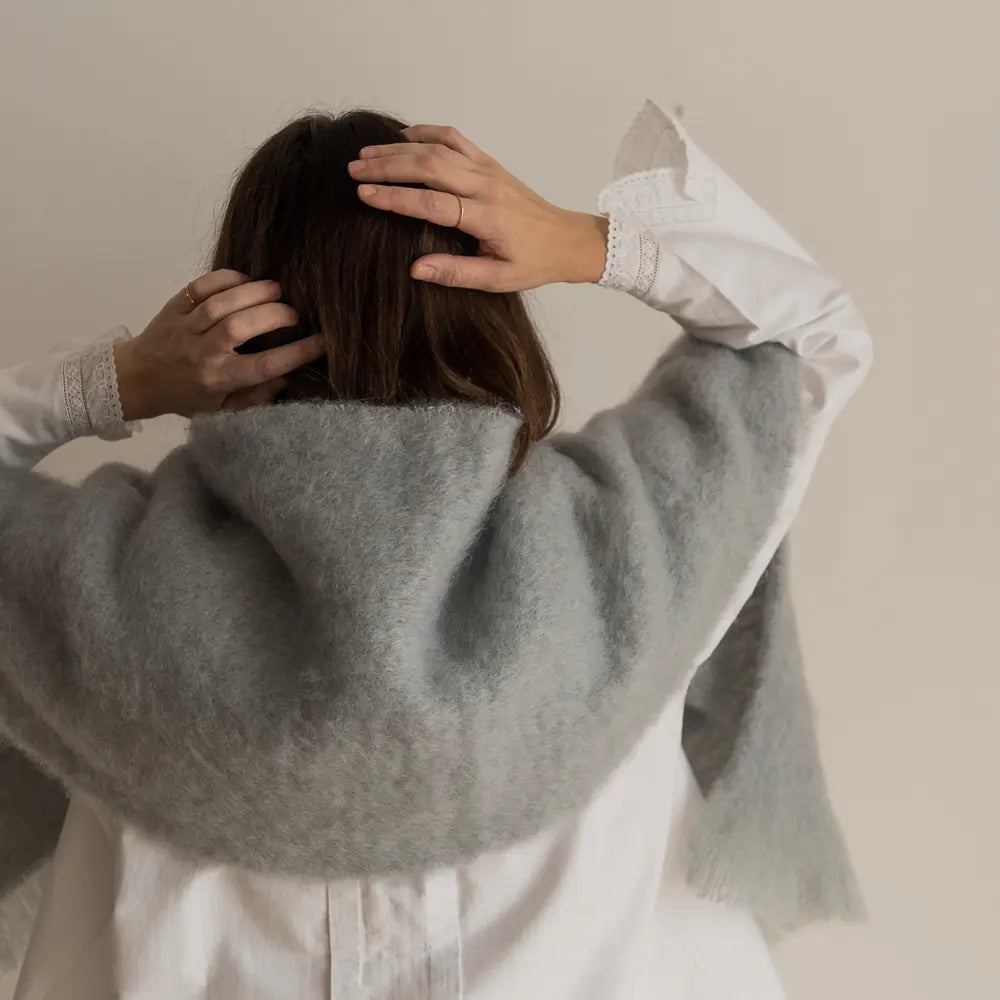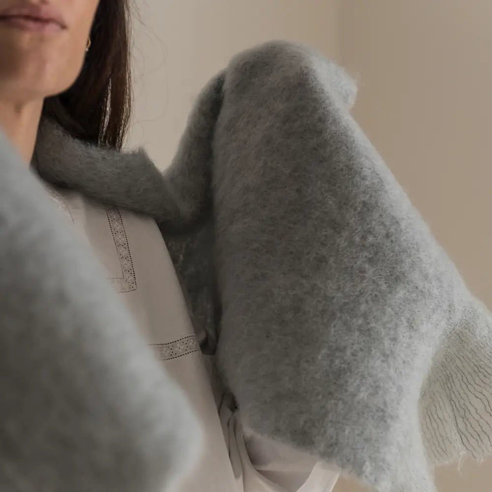 Esta maravillosa bufanda de color gris perla está hecha de la lana riojana que desde los años 30 arropa a todos los suertudos que tienen una. Suaves y cálidas, están tejidas por las manos expertas de los artesanos de Ezcaray que llevan décadas dedicándole mimo y paciencia a cada uno de sus productos, trabajando el mohair de la mejor calidad.