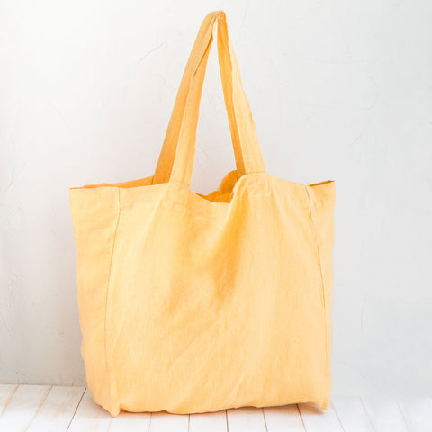 This linen bag in off-white is one of those that you always carry with you so you don't take a single more plastic bag. It accompanies you to the market, to the bookstore, to look for bread and to get some fruit. It is handcrafted with high-quality washed linen, so you can use it daily and withstand your day-to-day activity.