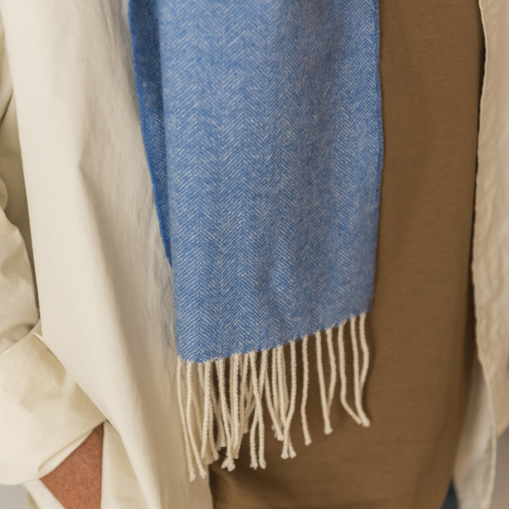 These scarves are produced in a textile factory with the experience of three family generations dedicated entirely to textile crafts, who continue to combine artisanal finishing techniques (for example, hand-knotting the fringes one by one, which is how they look best) and the latest mechanical improvements.