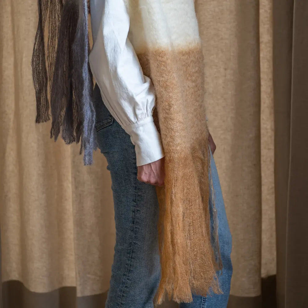 This scarf, with its soft, fluffy and cozy appearance, is made with Rioja wool that has an artisan tradition of almost a century of history behind it. It is woven by expert hands who have been working with the best quality mohair for decades.