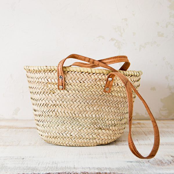 Palm Basket with Long Leather Straps - Make your own Gourmet Pack