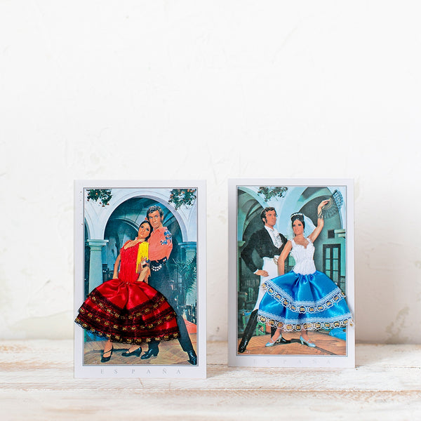 The postcards of our childhood. The dancer's body is embroidered in red and yellow thread and the skirt is made of satin and lace, with volume. A very sweet souvenir worthy of you sending as a souvenir of your vacation.