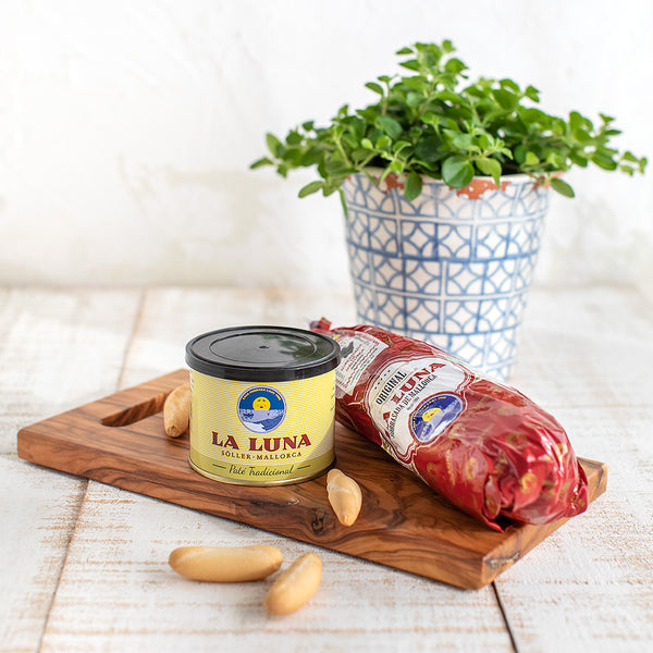 Only the selected pork and the best quality paprika, wisely brought together, become part of La Luna sobrasada. An excellent sausage carefully prepared thanks to the experience provided by La Luna's more than 100 years of life. It is cured slowly and naturally until it reaches the optimal point, which gives it an unmistakable bouquet and aroma, which make La Luna sobrasada a sublime product.