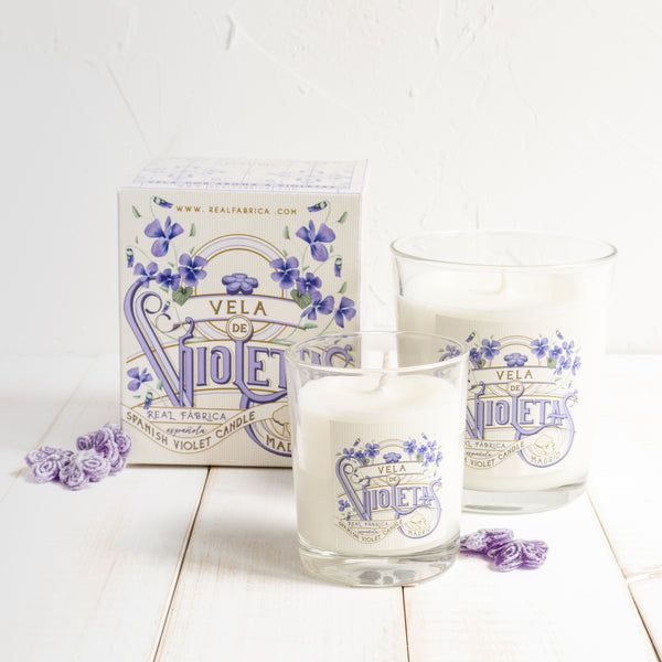 Our Real Fábrica candles are made with the best raw materials (soy wax, cotton wick) and their exclusive violet fragrance reminds us of one of the most characteristic symbols of Madrid. Made by hand in Spain with great care by Cerería Molla, lifelong master chandlers , they give off a delicate floral and powdery aroma.