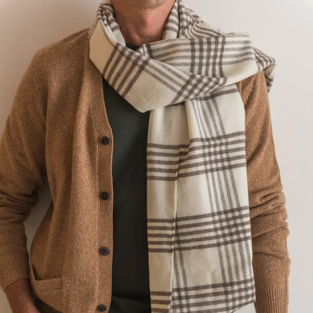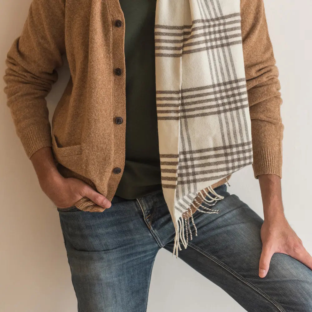Estas bufandas se producen en una fábrica textil con la experiencia de tres generaciones familiares dedicadas por completo a la artesanía textil, que siguen compaginando las técnicas artesanales de acabado (por ejemplo, anudando los flecos a mano uno a uno que es como mejor quedan) y las últimas mejoras mecánicas.