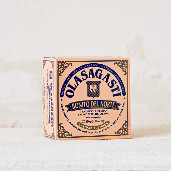 Sabor, color rosa claro y grasas omega 3. Hace un siglo que la familia Olasagasti sabía que esta materia prima de primera calidad pescada en el Cantábrico tenía que ser la mejor conserva del norte. Por eso siempre ha estado en nuestra mesa, acompañando las comidas. Abrir una lata es un placer, es como abrir la puerta de tu casa al norte de España. ¡Qué bonito bote y qué bonito el de dentro!