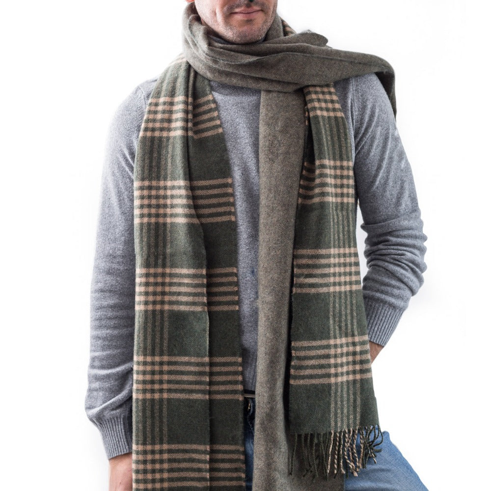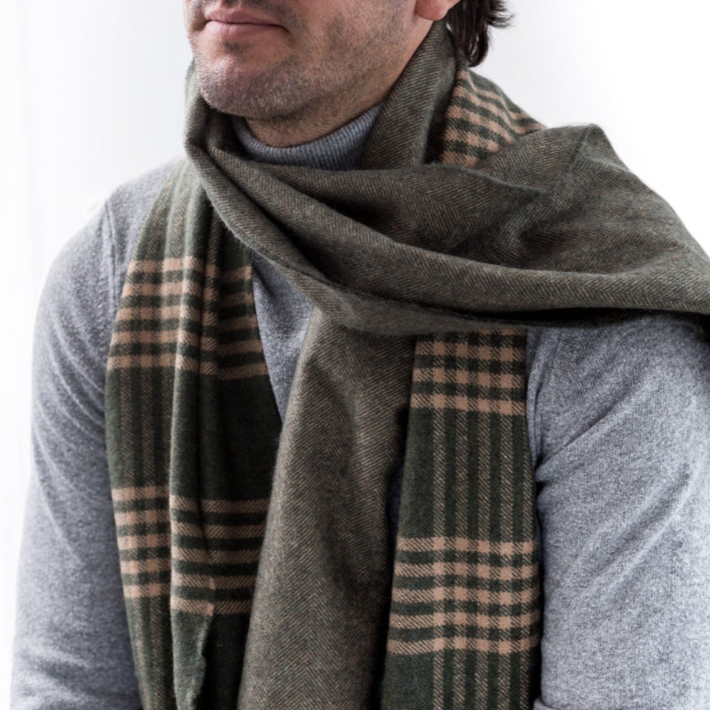 Bufanda de Lana Merino Cuadros Verdes