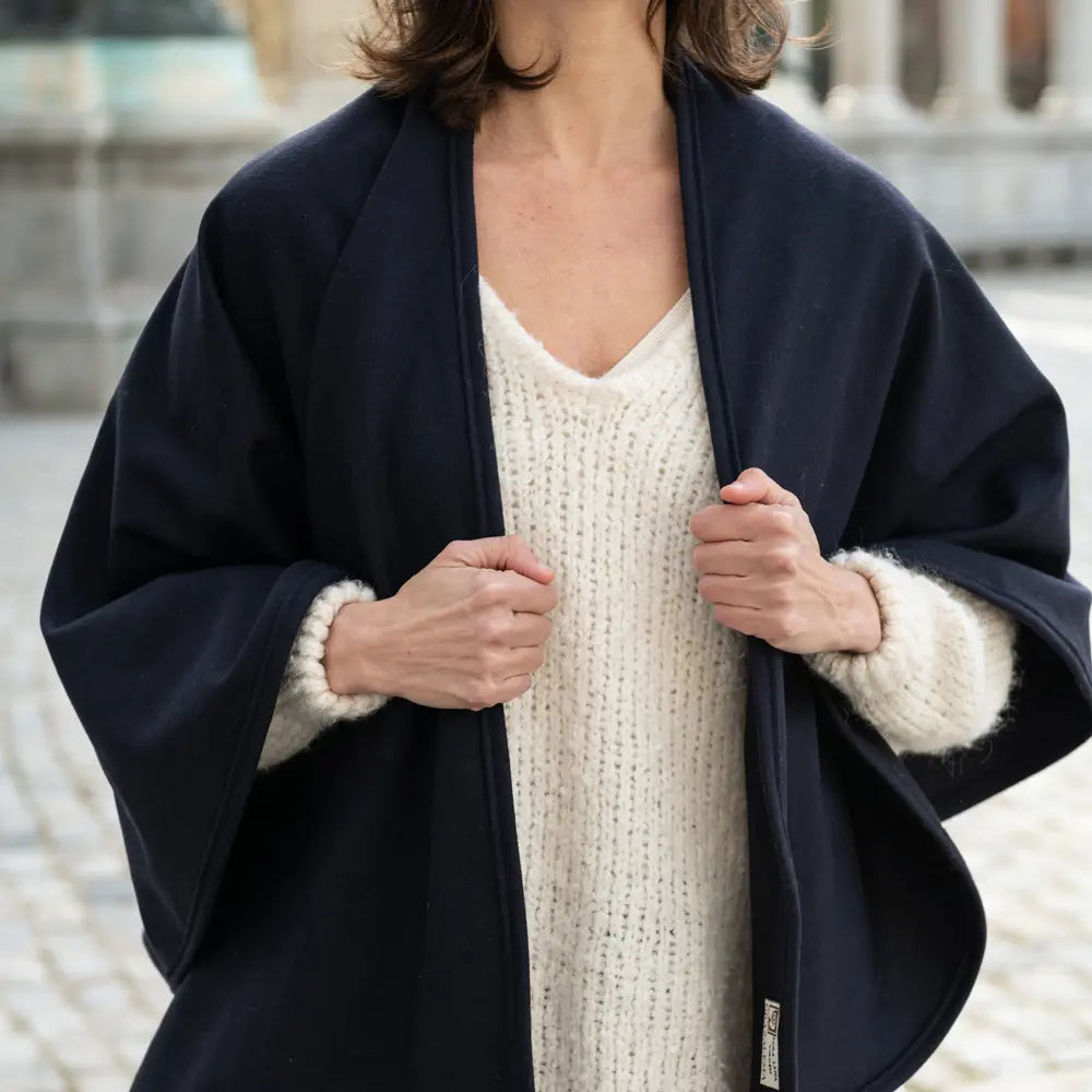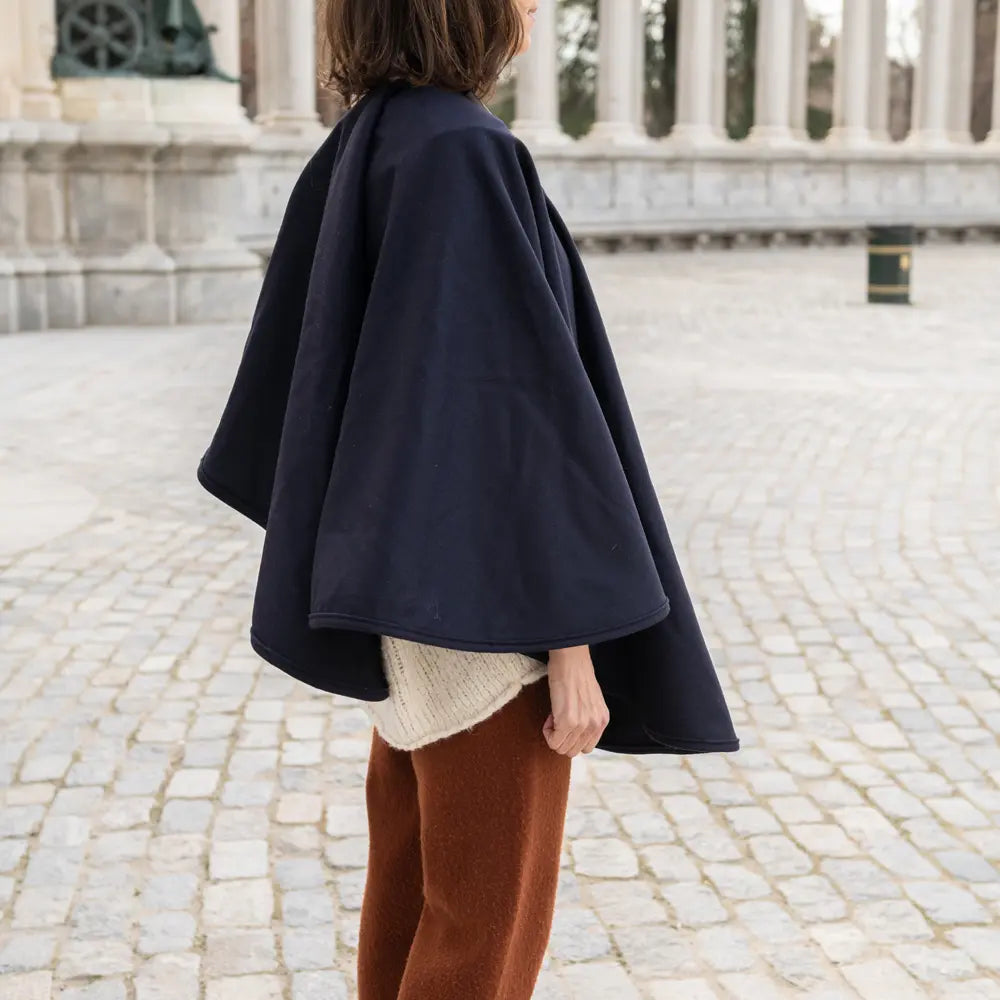Estas capas se producen en una fábrica textil con la experiencia de tres generaciones familiares dedicadas por completo a la artesanía textil, que siguen compaginando las técnicas artesanales de acabado y las últimas mejoras mecánicas. Estas capas de lana merino son una joya de la artesanía, que reinventan los cortes clásicos y los materiales de siempre.