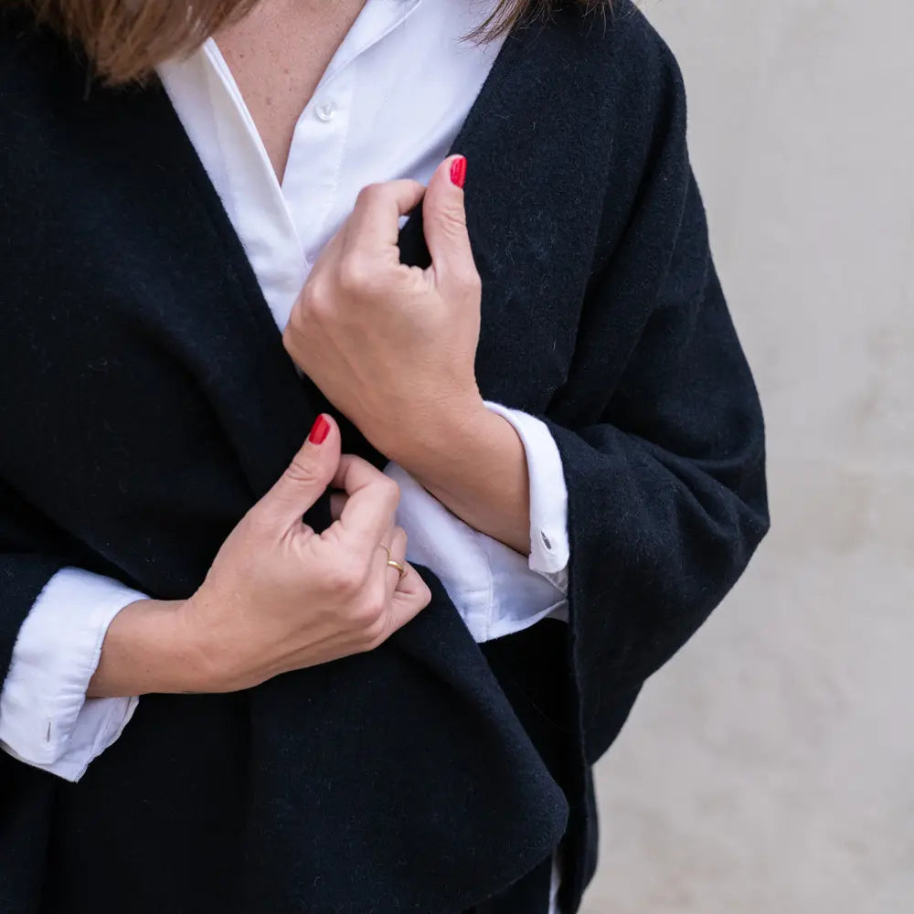 Estas capas se producen en una fábrica textil con la experiencia de tres generaciones familiares dedicadas por completo a la artesanía textil, que siguen compaginando las técnicas artesanales de acabado y las últimas mejoras mecánicas. Estas capas de lana merino son una joya de la artesanía, que reinventan los cortes clásicos y los materiales de siempre.