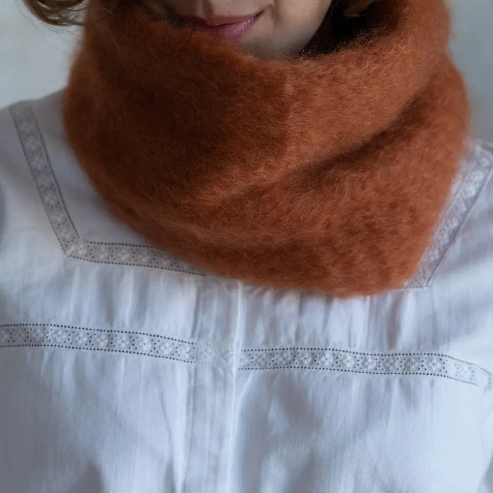 Este cuello de mohair, con esa pinta tan suave, mullida y acogedora, está hecho con lana riojana que tiene detrás una tradición artesana de casi un siglo de historia. Está tejido por manos expertas que llevan décadas trabajando el mohair de la mejor calidad.